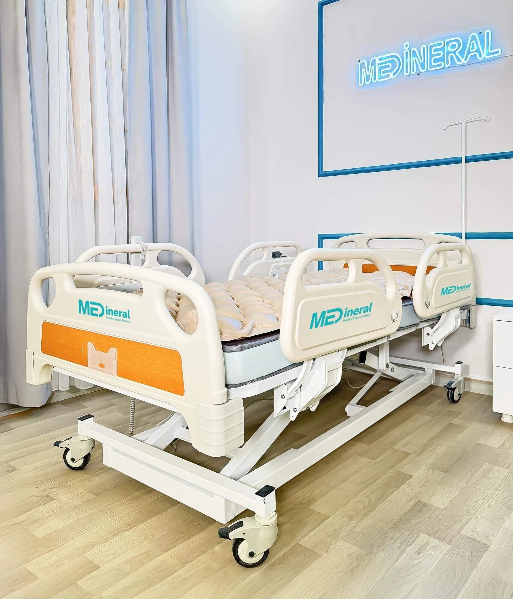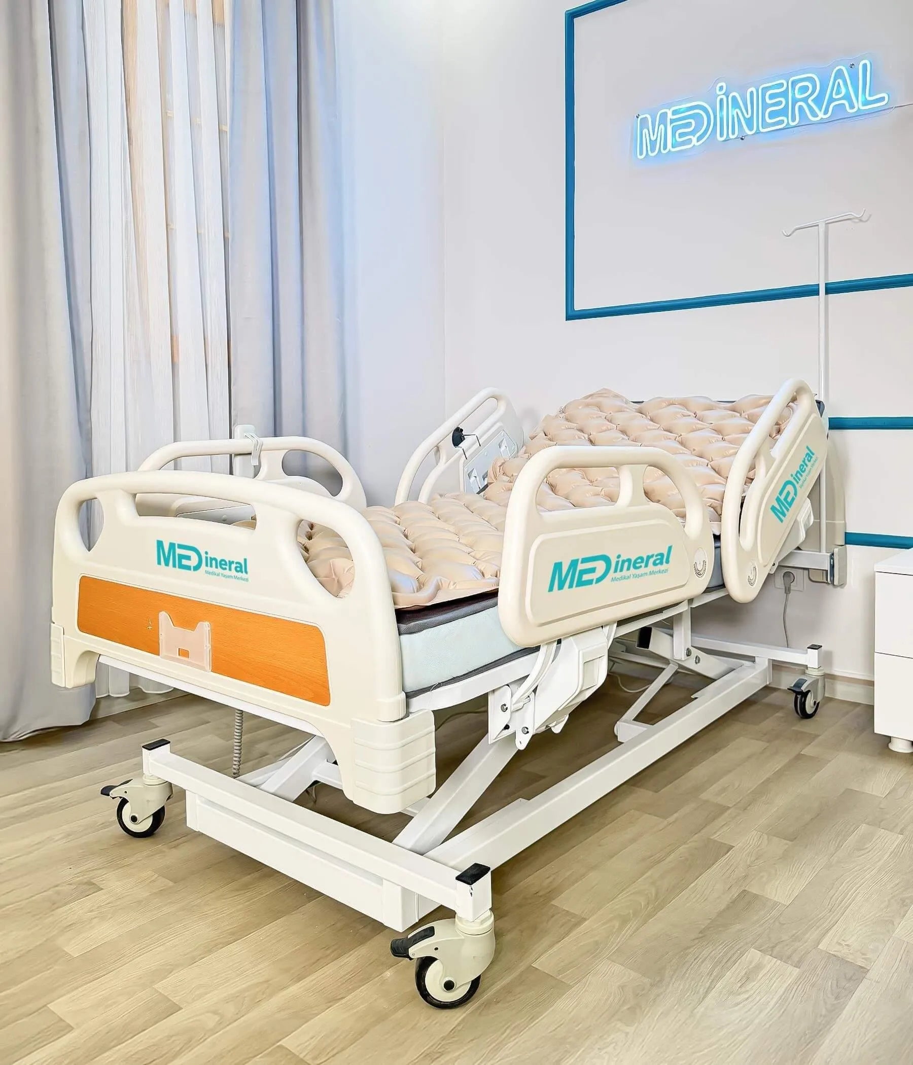 3 Motor Hasta Karyolası | Full ABS Asansörlü + Baklava Tipi Havalı Yatak + Alez