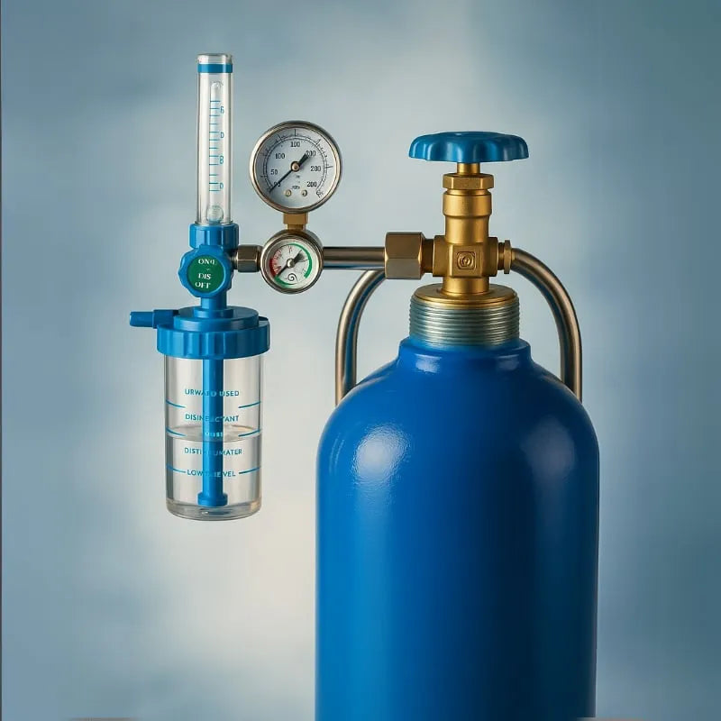 Ürünle birlikte verilen basınç göstergeli ve ayarlanabilir çıkışlı manometre sayesinde tüp içerisindeki oksijen miktarı kolayca takip edilebilir. Evde bakım, hastane, ambulans ve klinik kullanımına uygun olup medikal standartlara göre üretilmiştir.